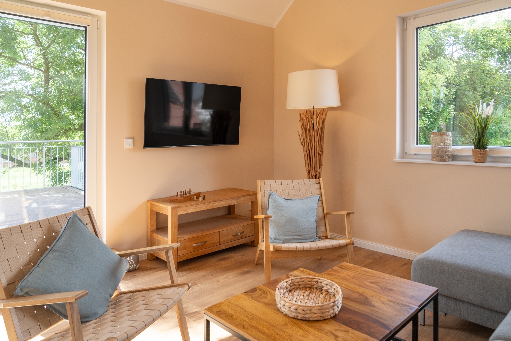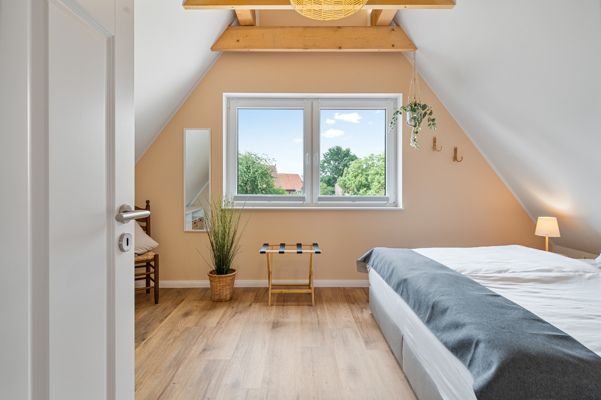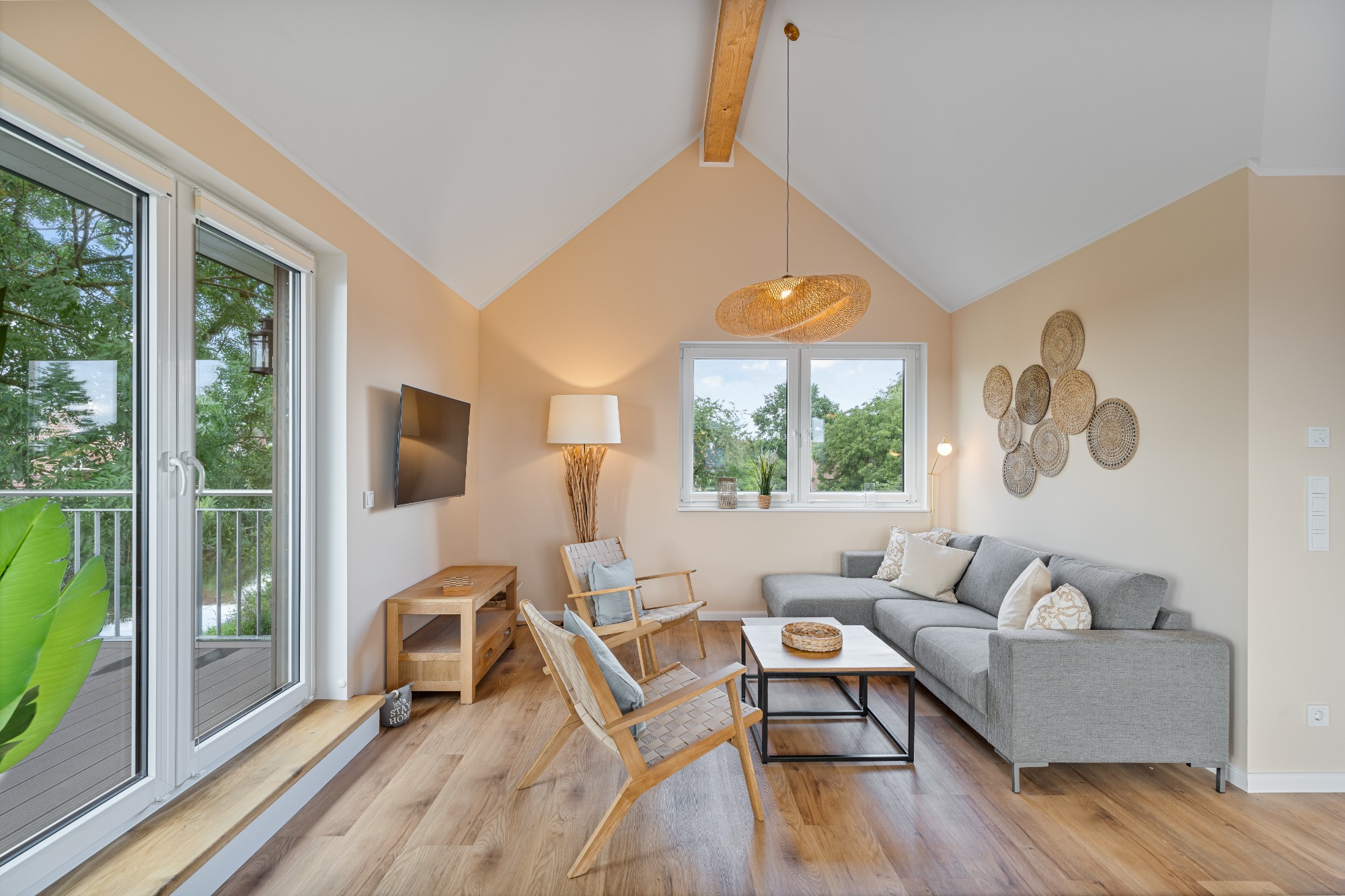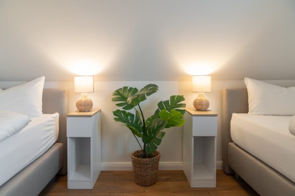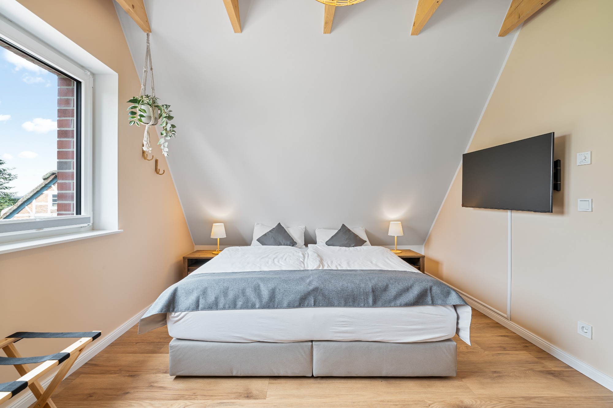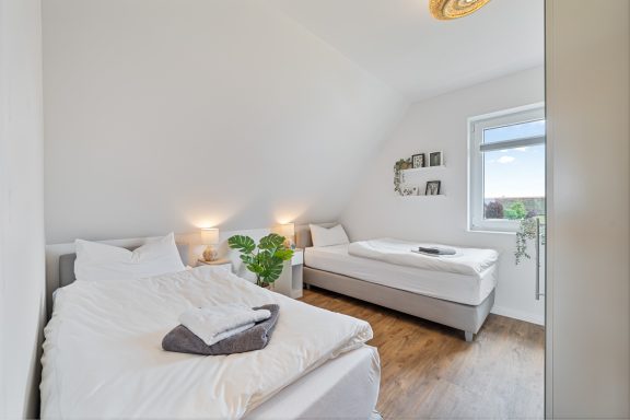 - Schlafzimmer 1: Boxspring-Doppelbett (180 x 200), Smart-TV, Verdunkelungsplissees