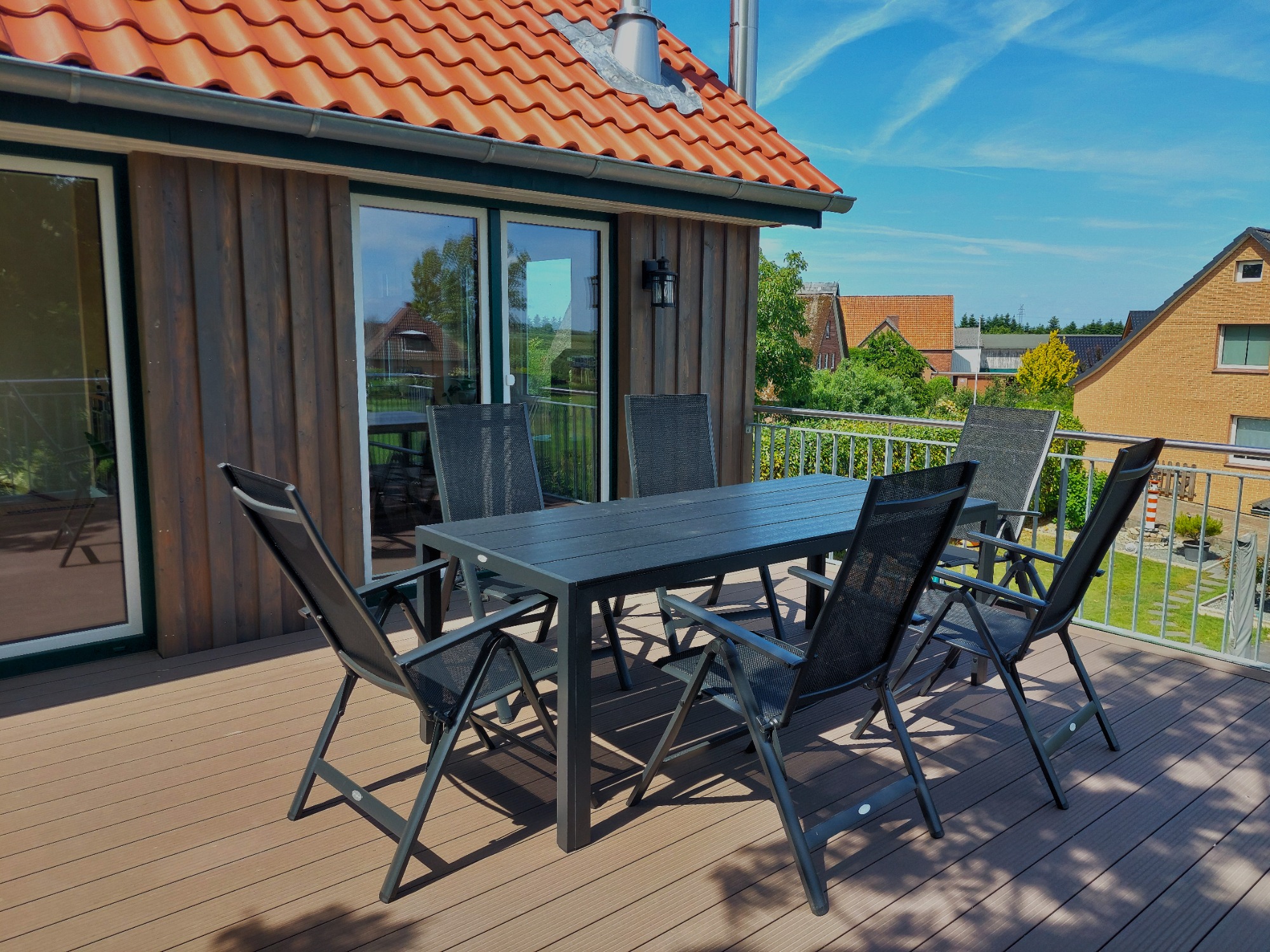 - Dachterrasse mit Gartenmöbeln und Elektrogrill